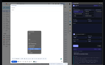 Quiky Email est une extension gratuite pour Chrome qui intègre des outils de rédaction d'emails directement dans un panneau latéral. Cette fonctionnalité vous permet de rédiger et de peaufiner vos messages sans quitter la page sur laquelle vous vous trouvez. Que ce soit pour répondre à un fil de discussion, rédiger une approche à froid ou améliorer un objet de message, Quiky Email vous offre une solution pratique et efficace.